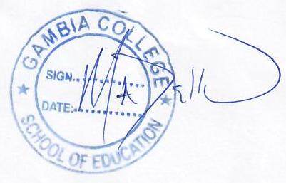 On behalf of School of Education, University of Education Gambia, I thank you for taking part in our Teacher Training Programme and look forward to your professional support and guidance to the trainee(s).